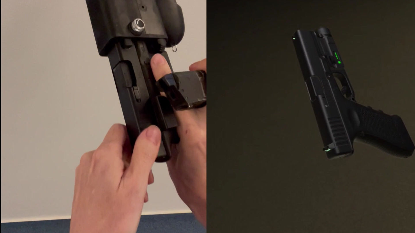Our system allows all manipulations related to firearms to be carried out physically and thus to be learned, trained and evaluated realistically. To enhance realism the system provides a physical blowback of the weapon when firing.